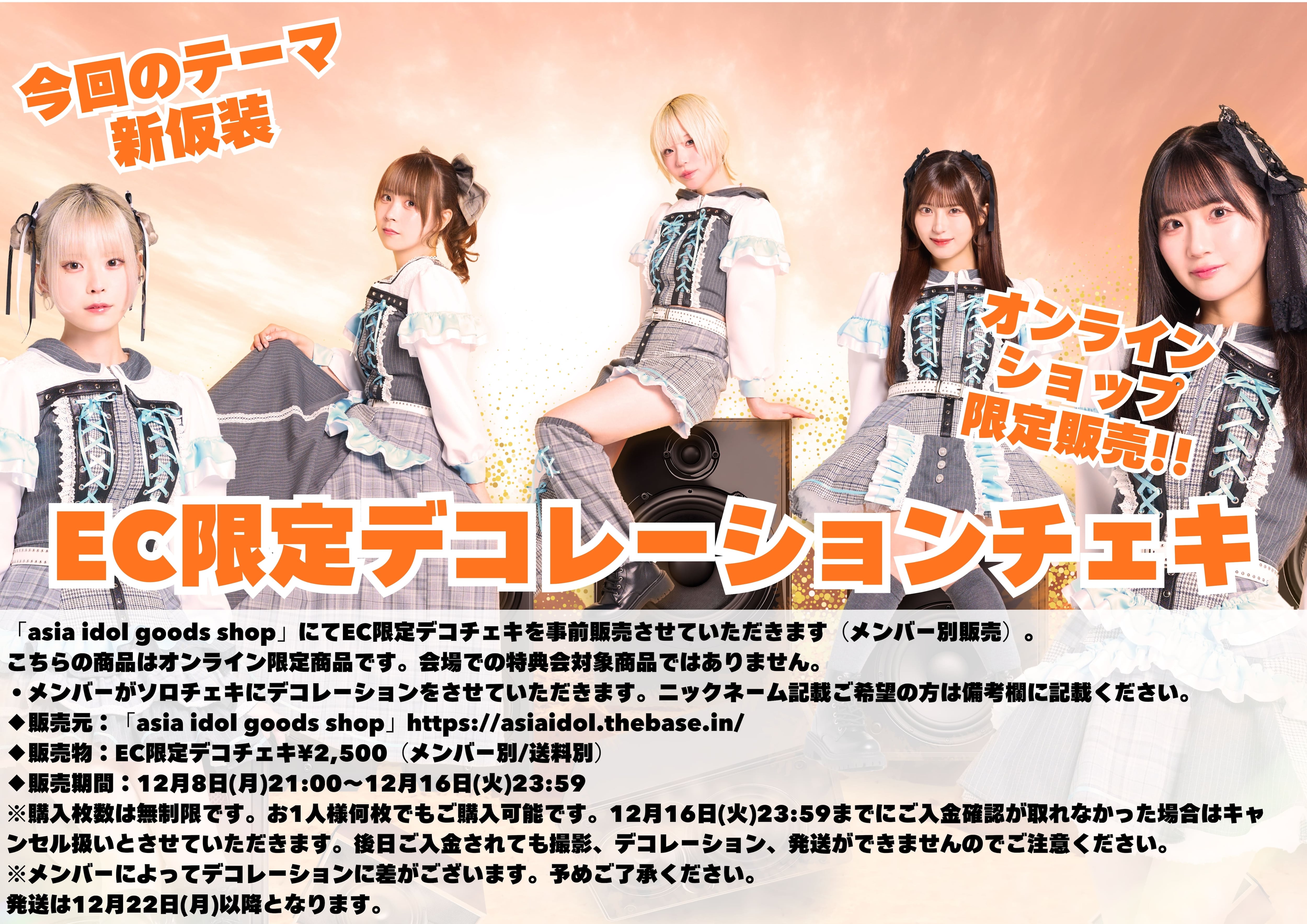 「asia idol goods shop」にてデコチェキを事前販売させていただきます(メンバー別販売)。こちらの商品はオンライン限定商品です。会場での特典会対象商品ではありません。