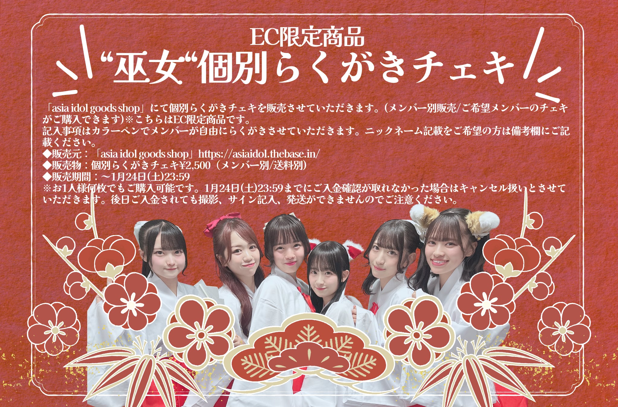 「asia idol goods shop」にて個別らくがきチェキを販売させていただきます(メンバー別販売)。こちらの商品はオンライン限定商品です。会場での特典会対象商品ではありません。
